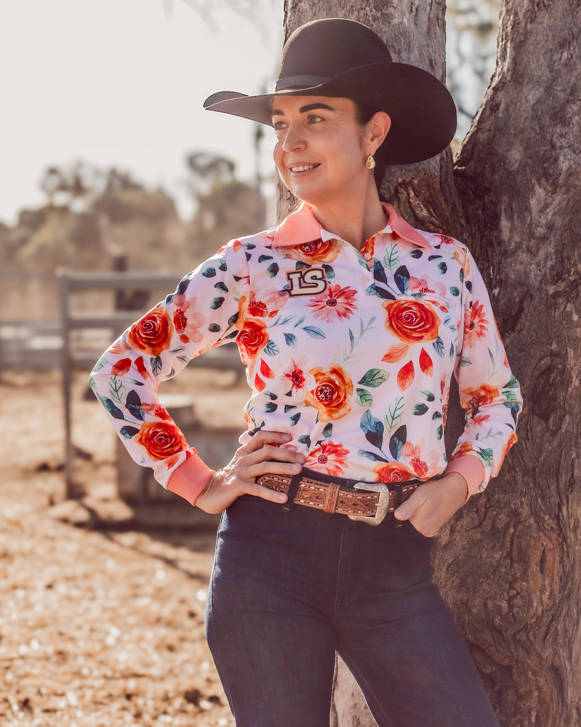 Ladies Sun Shirt - Peach & Rose